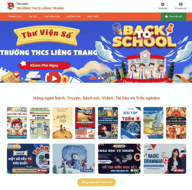 Ebook: Nhà trường cung cấp Ebook bộ sách giáo khoa, Ebook sách giáo viên mà trường đã chọn lựa và các Ebook học tiếng Anh bằng AI hay eBook tham khảo lên thư viện số để học sinh và giáo viên tham khảo khi không mang sách giấy bên cạnh.